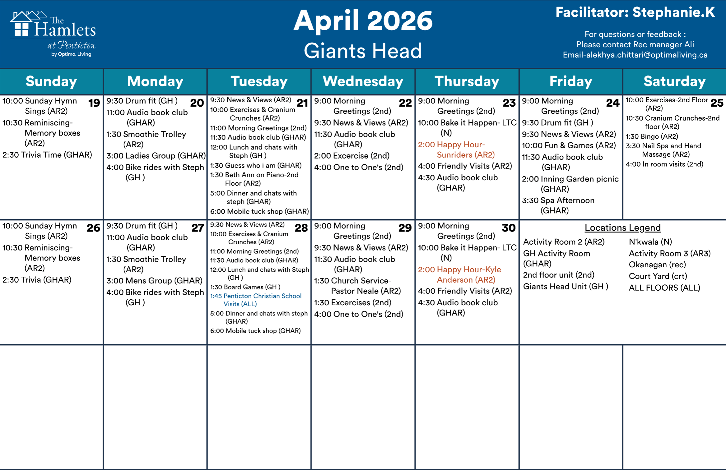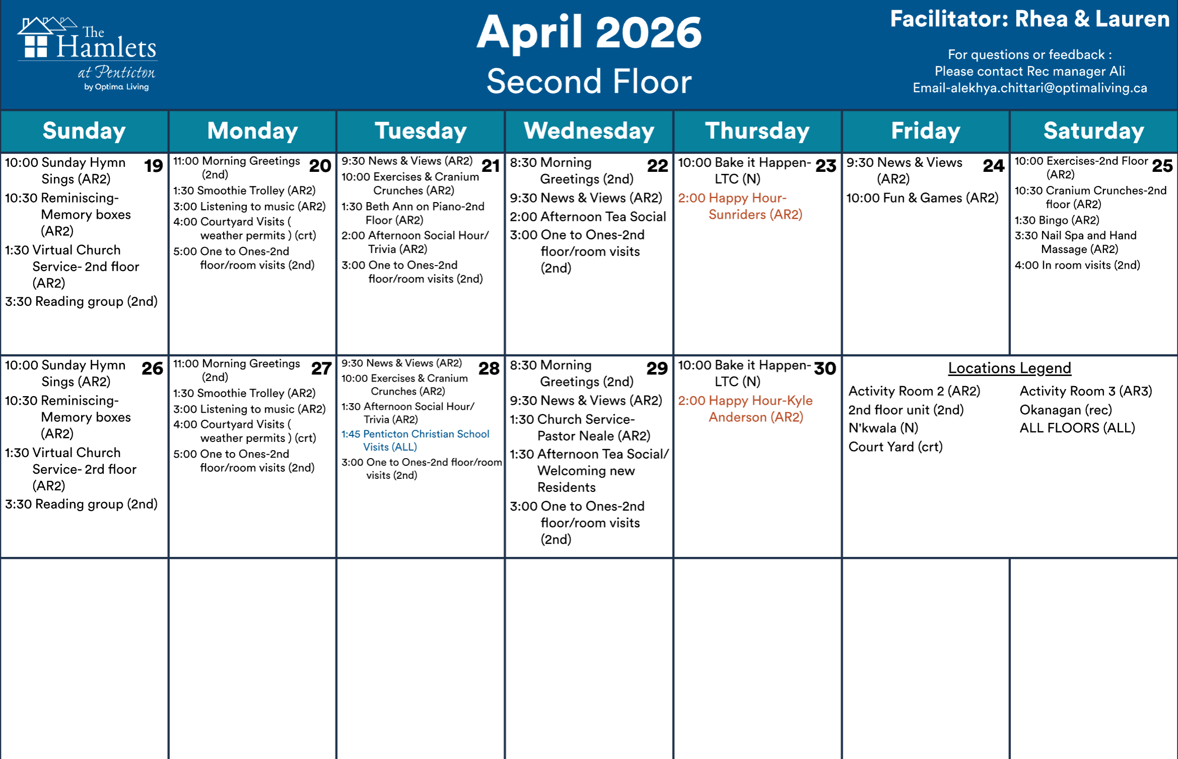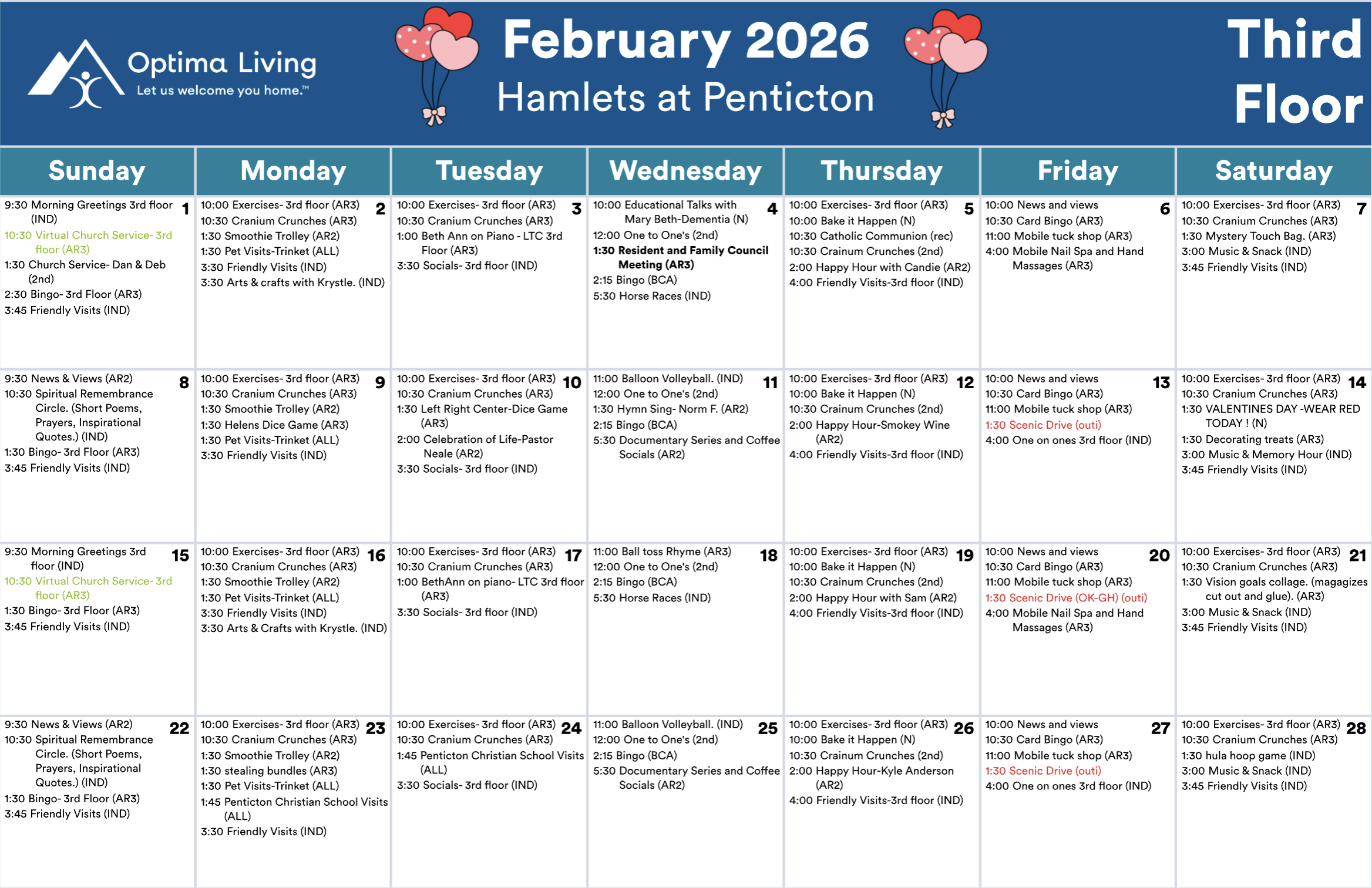 Events subject to change. Not all events open to the public. Call for details.