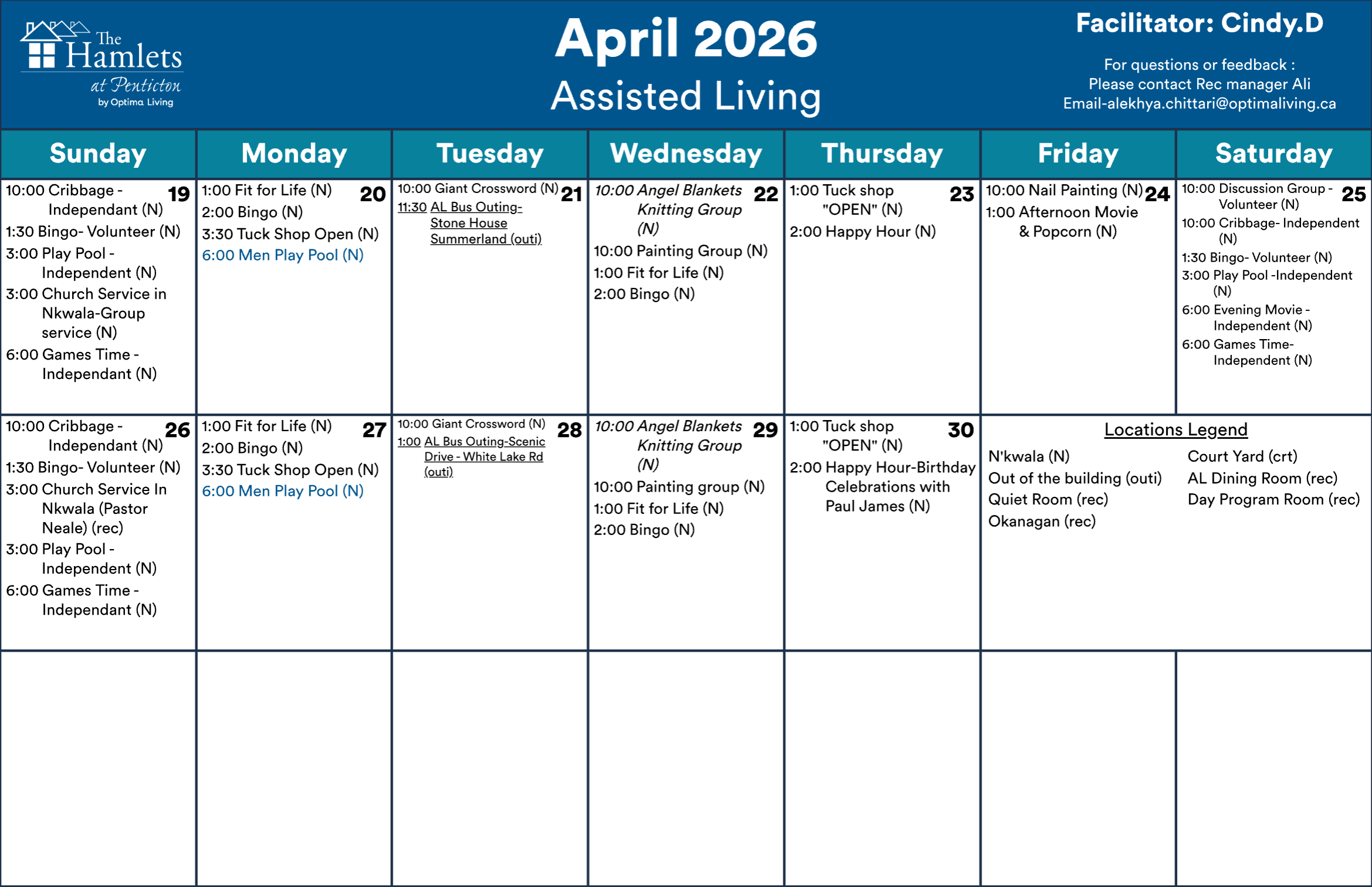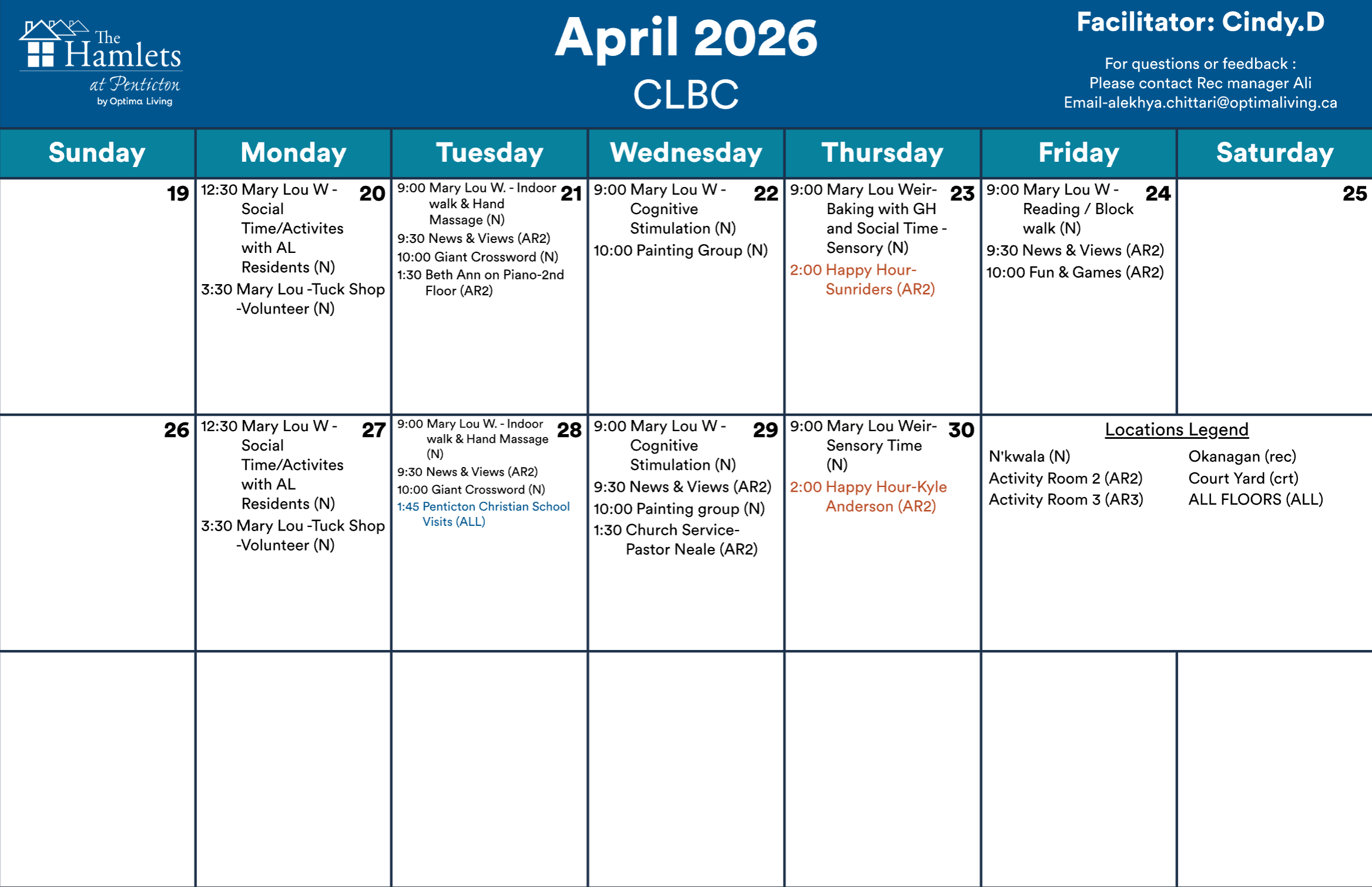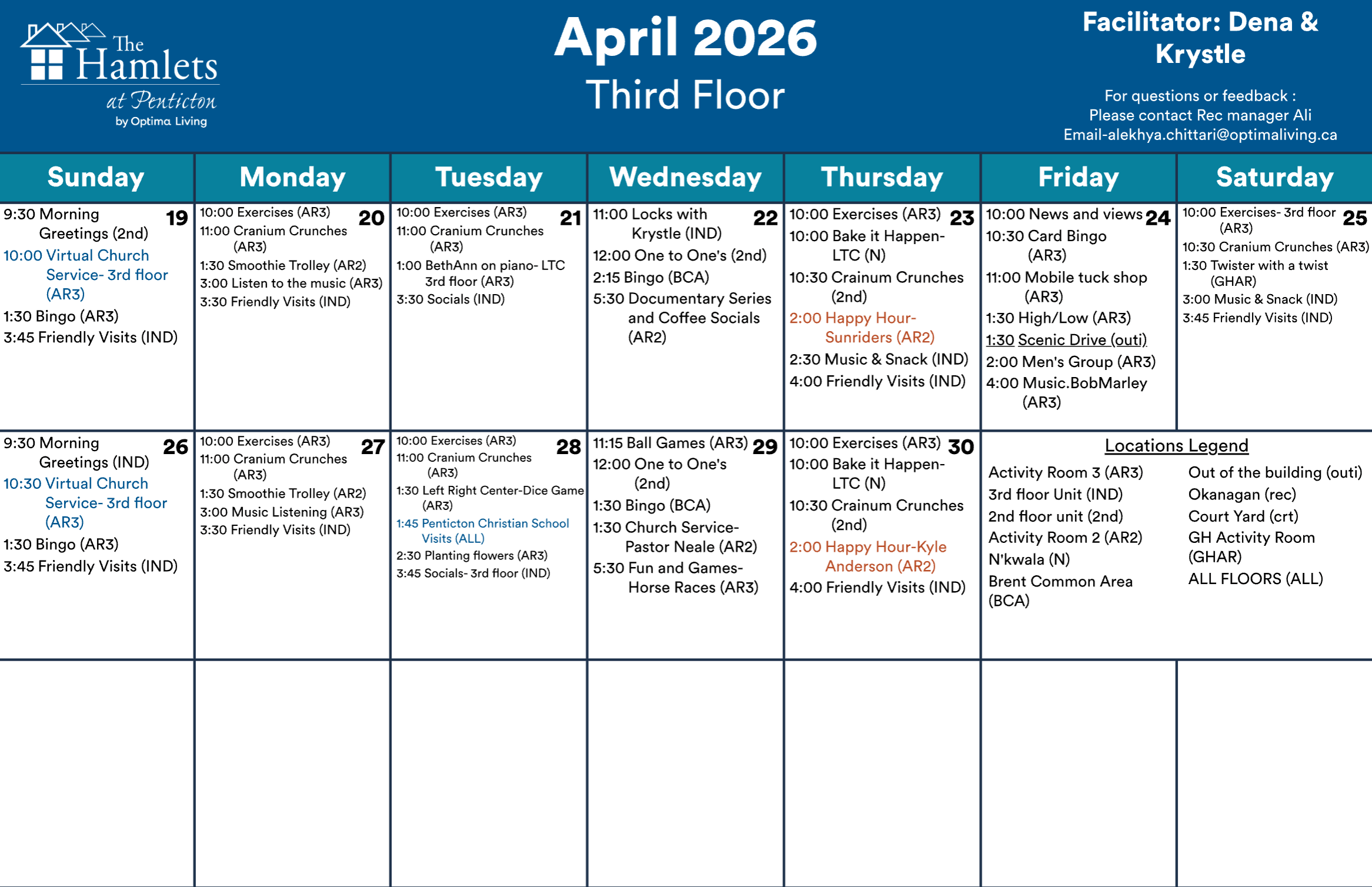 Events subject to change. Not all events open to the public. Call for details.